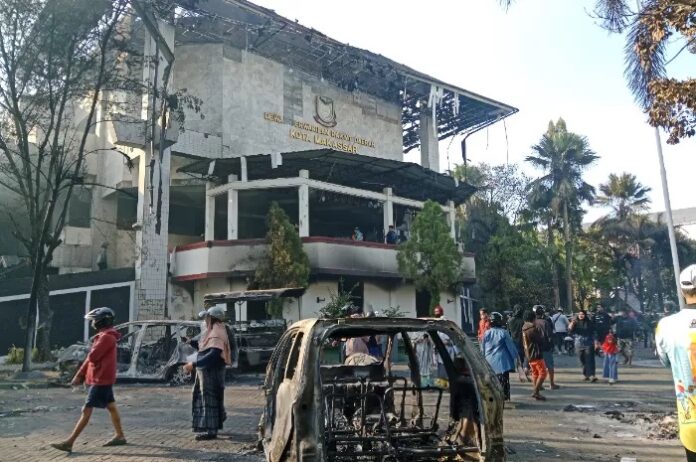 Gedung DPRD yang memiliki empat lantai dengan luas sekitar 400 meter persegi per lantai juga luluh lantak. Hampir seluruh perlengkapan kantor hangus terbakar dan tidak dapat diselamatkan.