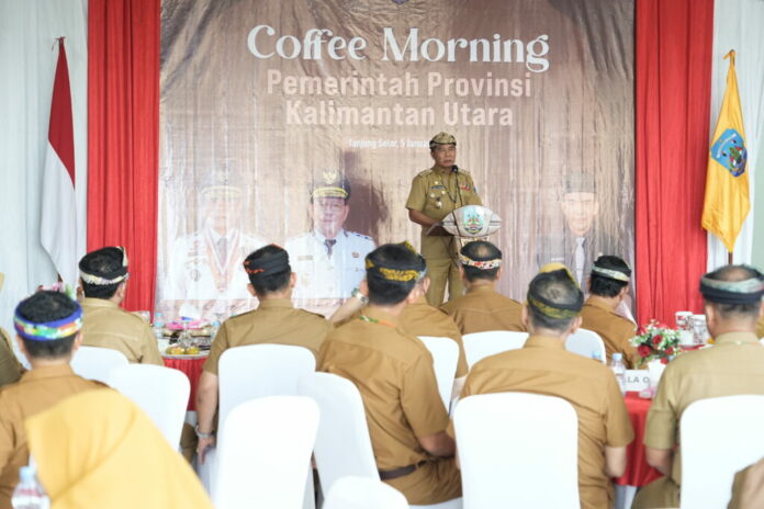 WARTA, TANJUNG SELOR – Membuka lembaran kerja di awal tahun 2026, Gubernur Kalimantan Utara, Dr. H. Zainal A. Paliwang, S.H., M.Hum., memberikan pesan tajam bagi seluruh Aparatur Sipil Negara (ASN) di lingkungan Pemprov Kaltara. Dalam suasana santai namun penuh makna pada acara Coffee Morning di Kantor Gubernur, Senin (5/1), Zainal menegaskan bahwa ASN adalah ujung tombak pelayanan yang harus bergerak melampaui hambatan geografis.