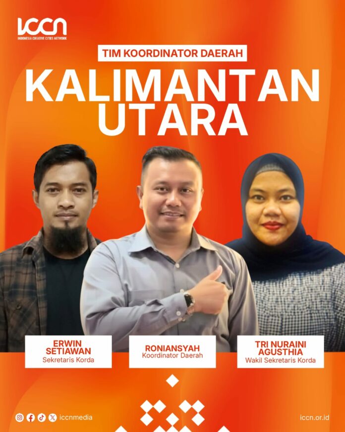 WARTA, TANJUNG SELOR – Indonesia Creative Cities Network (ICCN) resmi menetapkan Tim Koordinator Daerah (Korda) Provinsi Kalimantan Utara melalui SK Nomor 005/SK/ICCN/II/2026 untuk periode 2026–2028. Dalam struktur tersebut, Roniansyah ditunjuk sebagai Koordinator Daerah, didampingi Erwin Setiawan sebagai Sekretaris dan Tri Nuraini Agusthia sebagai Wakil Sekretaris.