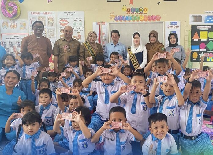 WARTA, NUNUKAN — Bunda Pendidikan Anak Usia Dini (PAUD) Kabupaten Nunukan, Andi Annisa Muthia Irwan, menyerahkan secara simbolis Kartu Identitas Anak (KIA) kepada sejumlah siswa di TK Sion, Senin (27/10/2025).