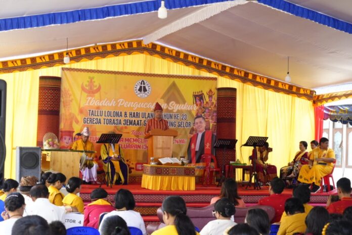 WARTA, TANJUNG SELOR – Jemaat Gereja Sion Tanjung Selor menggelar Ibadah Pengucapan Syukur Tallu Lolona sekaligus merayakan Hari Ulang Tahun (HUT) ke-23 Gereja Toraja Jemaat Sion dengan tema “Tuhan Setia Memelihara Umat-Nya”, Minggu (28/9).
