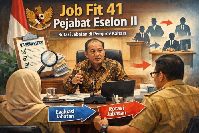 WARTA, TANJUNG SELOR – Pemerintah Provinsi Kalimantan Utara (Kaltara) tengah bersiap menggelar uji kesesuaian jabatan (job fit) bagi puluhan pejabat pimpinan tinggi pratama. Langkah ini menjadi bagian dari upaya penyegaran birokrasi sekaligus memastikan penempatan pejabat sesuai kompetensi.