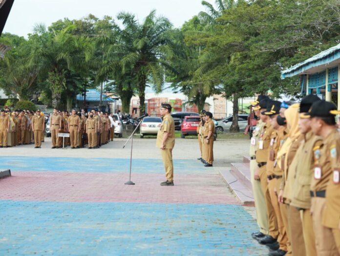 WARTA, TANJUNG SELOR – Asisten Bidang Administrasi Umum Setdaprov Kalimantan Utara, Pollymaart Sijabat, SKM., M.AP, mewakili Gubernur Kaltara memimpin apel pagi rutin lingkup Pemerintah Provinsi Kalimantan Utara di Lapangan Agatis, Senin (13/10/2025).