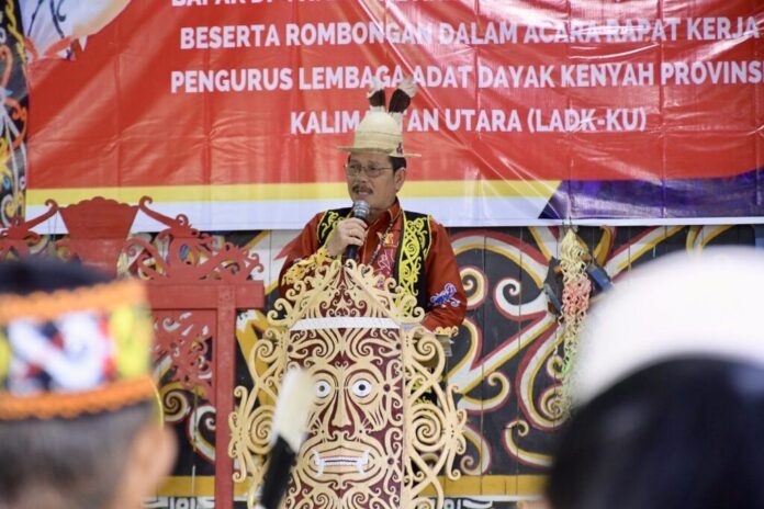 WARTA, TANJUNG SELOR — Wakil Gubernur Kalimantan Utara, Ingkong Ala, S.E., M.Si., resmi membuka Rapat Kerja Daerah (Rakerda) Lembaga Adat Dayak Kenyah Kaltara (LADK-KU) Tahun 2025 yang berlangsung di Gedung Pemuda Tebengang Lung, Senin (17/11). Dalam sambutannya, Wagub menegaskan pentingnya Rakerda sebagai forum strategis untuk memperkuat perjalanan lembaga adat di tengah perkembangan zaman.