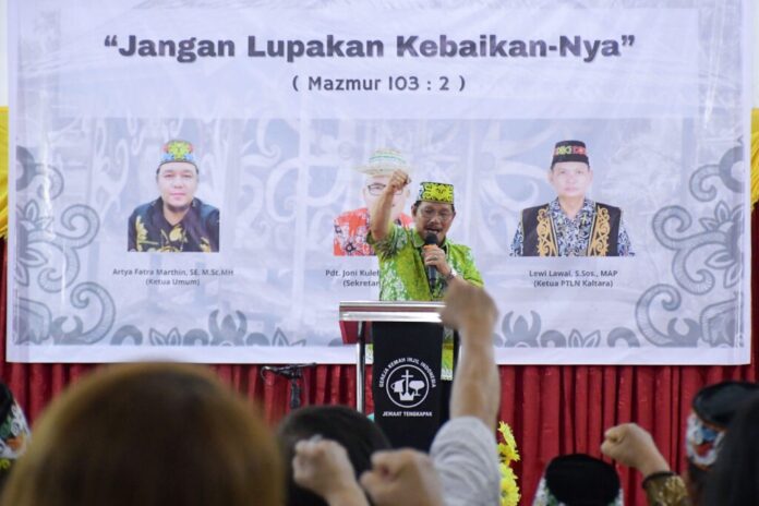 WARTA, TANJUNG SELOR – Wakil Gubernur Kalimantan Utara (Kaltara) Ingkong Ala, S.E., M.Si menghadiri Ibadah Syukur dan Pumung Uman (berkumpul bersama keluarga dan kerabat) yang diselenggarakan oleh Perkumpulan Tebengang Lung Nusantara bersama jemaat Gereja Kemah Injil Indonesia (GKII) Tengkapak, Sabtu (25/10/2025).