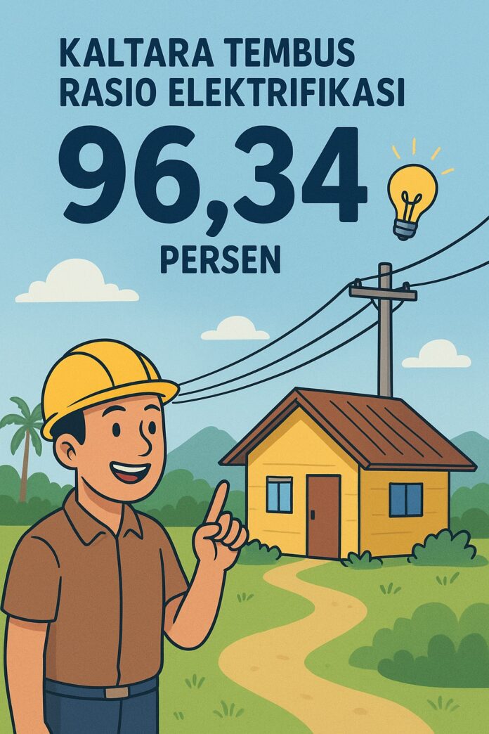 WARTA, TANJUNG SELOR – Di tengah kondisi geografis ekstrem dan akses yang masih terbatas, Provinsi Kalimantan Utara (Kaltara) mencatatkan capaian membanggakan. Hingga triwulan III tahun 2025, rasio elektrifikasi berhasil menembus 96,34 persen, melampaui target nasional.